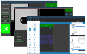 自定義檢測界面,用戶logo,圖像顯示,圖形顯示,參數控制按鈕,表格,圖表,運行控制按鈕,統計,界面布局,界面停靠,多界面,多界面控制按鈕,自定義顯示文字 ,界面顏色控制 ,界面字體控制,導出可執行exe,導出C,C#方便二次開發。支持界面控件快速擴展。